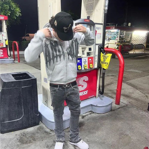 Street Trend Flame Rhinestone Loose Zip up